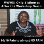 I saw on Facebook the Back Pain Clinic Post at Synergy. My aunt had done therapy here years ago and they helped her! So I came. After 1 treatment I slept all through the night and woke up thinking I had overslept. I was still on my back – NO PAIN!! Why didn’t I come here years ago?!